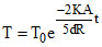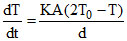 One mole of oxygen is contained in a rigid container with walls of inner surface area A, thickness d and thermal conductivity K. The gas is at initial temperature T0 and the surrounding temperature of air is 2T0. The temperature of the gas at time t is (R is gas constant) :-