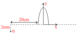 If an object is placed 20 cm in front of a half thin convex lens of focal length 10 cm, as shown in figure, then taking object position as origin :-