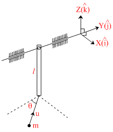 A particle of mass m moving in XY horizontal plane strikes the end of the vertical rod at an angle 37o with Y-axis. Rod has mass m and length l and it is free to rotate about hinge along Y-axis. If particle strikes rod with speed u and sticks to it, find the CORRECT choice(s).