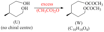 Which acid can be oxidised by Fehling solution :...In the presence of small amount of phosphorous, aliphatic carboxylic acids react with chlorine or bromine to yield a com...Which is/are correct reaction(s) :...The reaction , CH3COOC2H5 C2H5OH + CH3CH2OH, is called -...In a set of the given reactions, acetic acid yields a product C -CH3COOH + PCl5 → A B C Product C would be -...