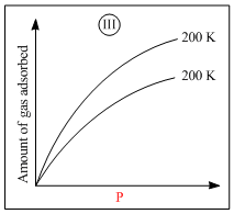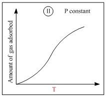 Graph (I) and (III) represent physiosorption because, in physiosorption, the amount of adsorption decreaseswith the increase of temperature and increases with the increase of pressure.