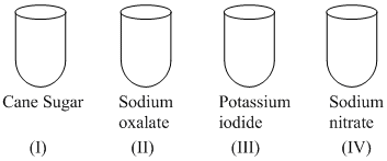 Concentrated sulphuric acid is added followed by heating of each of the following test tubes labbelled (I) to (IV)