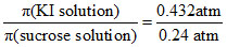 The osmotic pressures of 0.010 M solutions of KI and of sucrose (C12H22O11) are 0.432 atm and 0.24 atm respectively. The van′t Hoff factor for KI is :-