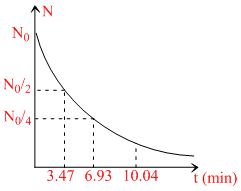 A radioactive sample undergoes decay as per the following graph. At time t = 0, the number of undecayed nuclei is N0. Calculate the number of nuclei left after 1 h :-