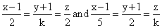 For k = 2, obviously the plane y + 1 = z is common in both lines