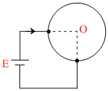 A battery of emf E volt is connected across a coil of uniform wire as shown radius of coil is a meters and total resistance of wire is R ohm. Then magnetic field at the centre O of the coil :-