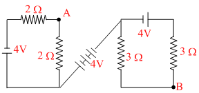 In the following circuit, the potential difference between the points A and B will be (VA - VB) :