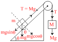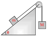 A wire of 9.8 × 10-3 kgm-3 passes over a frictionless light pulley fixed on the top of a frictionless inclined plane which makes an angle of 30o with the horizontal. Masses m and M are tied at the two ends of wire such that m rests on the plane and M hangs freely vertically downwards. The entire system is in equilibrium and a transverse wave propagates along the wire with a velocity of 100 ms-1. Choose the correct option :-
