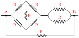 Effective resistance between point A and B for following network is- (each branch of resistance is R)
