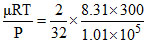 2 gm of O2 gas is taken at 27oC and pressure 76cm. of Hg. Then find out volume of gas - (in litre)