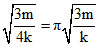 Masses m and 3 m are attached to the two ends of a spring of spring constant k. If the system vibrates freely, the period of oscillation will be:-