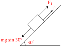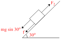 A block of mass m placed on a rough inclined plane of inclinationθ = 30o can be just prevented from sliding down by applying a force F1 up the plane and it can be made to just slide up the plane by applying force F2 up the plane. If the coefficient of friction between the block and the inclined plane is 1/2√3 , the relation between F1 and F2 is :-