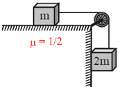 If the system is released from rest then speed of mass m when it has travelled a distance d on a rough surface is :