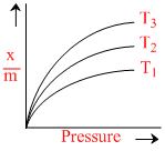 The variation of extent of adsorption with pressure at a given constant temperature is given in following figure :