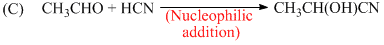 C.CH3CHO + HCN → CH3CH(OH)CN