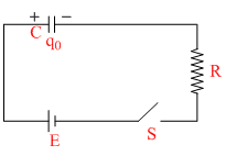 A capacitor having initial charge q0 = CE/2 is connected to a cell of e.m.f. E through a resistor R as shown. Find the total heat generated in the circuit after the switch S is closed :-