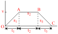Let the car takes time t1 to reach from O to A a distance s with acceleration f and t2 to come to rest from B to C with deceleration