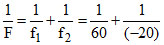Two thin lenses, one of focal length + 60 cm and the other of focal length -20 cm are put in contact. The combined focal length is :-
