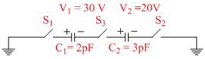 D.With S1 & S3 closed,V1 = 30V, V2 = 20V