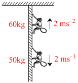 Tension in the massless rope at rigid support is (g = 10ms-2)