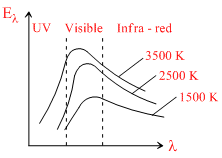 ⇒ vm ∝ T.As temprature of body increase, frequency corresponding to maximum energy in radiation (vm) increases.