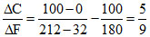 The graph AB shown in figure is a plot of temperature of a body in degree Celsius and degree Fahrenheit. The :-
