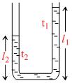 In a vertical U - tube containing a liquid, the two arms are maintained at different temperatures, t1and t2. The liquid columns in the two arms have heights l1 and l2 respectively. The coefficient of volume expansion of the liquid is equal to :-