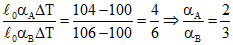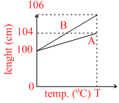 The variation of lengths of two metal rods A and B with change in temperature is shown in figure. The ratio of