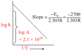 The rate constant of a reaction is given by k = 2.1 × 1010 exp(-2700/RT). It means that