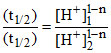 The inversion of cane sugar proceeds with half life of 500 min at pH 5 for any concentration of sugar. However, if pH = 6, the half life change to 50 min. The rate law expression for the sugar inversion can be written as