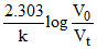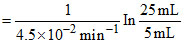 The decomposition of H2O2 can be followed by titration with KMnO4 and is found to be a first order reaction. The rate constant is 4.5× 10-2. In an experiment, the initial titer value