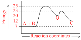 In a multistep reaction such as A + B → Q → C. The potential energy diagram is shown below. What is Ea for the reaction Q → C ?