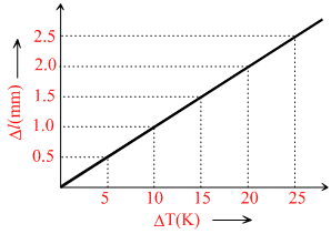 Figure shows the expansion of a 2m long metal rod temperature. The volume expansion coefficient meta is :-