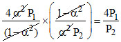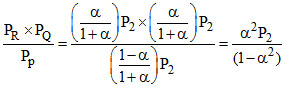 The equilibrium constant Kp1 and Kp2 for the reactions A ⇋ 2B and P ⇋ Q + R, respectively, are in the ratio of 2 : 3. If the degree of dissociation of A and P are equal, the total pressure at equilibrium is,