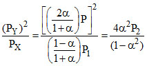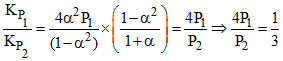 For the reaction X ⇋ 2Y and Z ⇋ P + Q occuring at two different pressure P1 and P2, respectively. The ratio of the two pressure is 1 : 3. What will be the ratio of equilibrium constant, if the degree of dissociation of X and Z are equal.