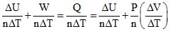 For any process ᐃU + W = nCVᐃT In adiabatic process