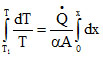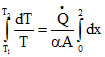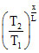 , where α is constant. The ends of the rod are kept at temperature T1 and T2. The temperature T at x, where is the distance from the end whose temperature is T1 is : -