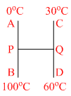 Three identical rods AB, CD and PQ are joined as shown. P and Q are mid points of AB and CD respectively . Ends A, B, C and D are maintained at 0oC, 100oC, 30oC and 60oC respectively. The direction of heat flow in PQ id : -