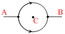 A and Bare two points on a uniform metal ring whose center is C. The angle ABC = θ. A and B maintained at two different constant temperatures. When θ = 180o, the rate of total heat flow from A to B is . 1.2 W When θ = 90o, this rate will be :-