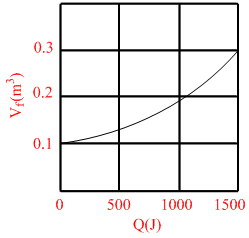Suppose 0.5 mole of an ideal gas undergoes an isothermal expansion as energy is added to it as heat Q. Graph shows the final volume Vf versus Q. temperature of the gas is :- (use ln 9 = 2 and R =
