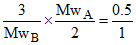 When 2 g of gas A is introduced into an evacuated flask kept at 25oC, the pressure was found to be 1 atomsphere. If 3 g of another gas B is then added to the same flask, the pressure becomes 1.5 atm. Assuming ideal behaviour, the ratio of molecules weights (MA : MB) is