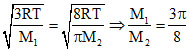 A vessel is partitioned two equal halves by a fixed diathermy separator. Two different ideal gasses are filled in left (L) and right halves. The rms speed of the molecules in l part is equal to the mean speed of molecules in the R part. Then the ratio of a molecule in L part to that of a molecules in R part is : -