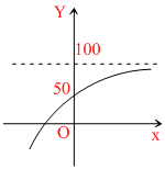 Which one of the following curves represents the solution of the initial value problem Dy = 100 - y, where y(0) = 50