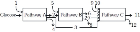 The three boxes in this diagram represent the three major biosynthetic pathways in aerobic respiration.Arrows represent net reactants or products.