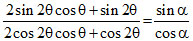If sinθ + sin 2θ + sin 3θ = sin α and cosθ + cos2 θ + cos3θ = cosα, then θ is equal to -