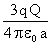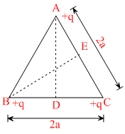 Three charges, each +q, are placed at the corners of an isoscales triangle ABC of sides BC and AC, 2a. D and E are the mid point of BC and CA. The work done in taking a charge Q from D to E is