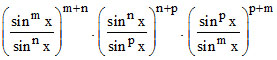 f(x) = (sin x)m2 - n2 . (sin x)n2 - p2 . (sin x)p2 - m2