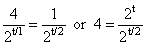 or 4 = 2t/2 or 22 = 2t/2