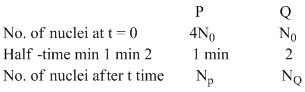 = 2 or t = 4 minAfter 4 minutes, both P and Q have equal number of nuclei