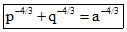 If the tangent at any point on the curve x4 + y4 = a4 cuts off intercept p and q on the axes, the value of p-4/3 + q-4/3 is-